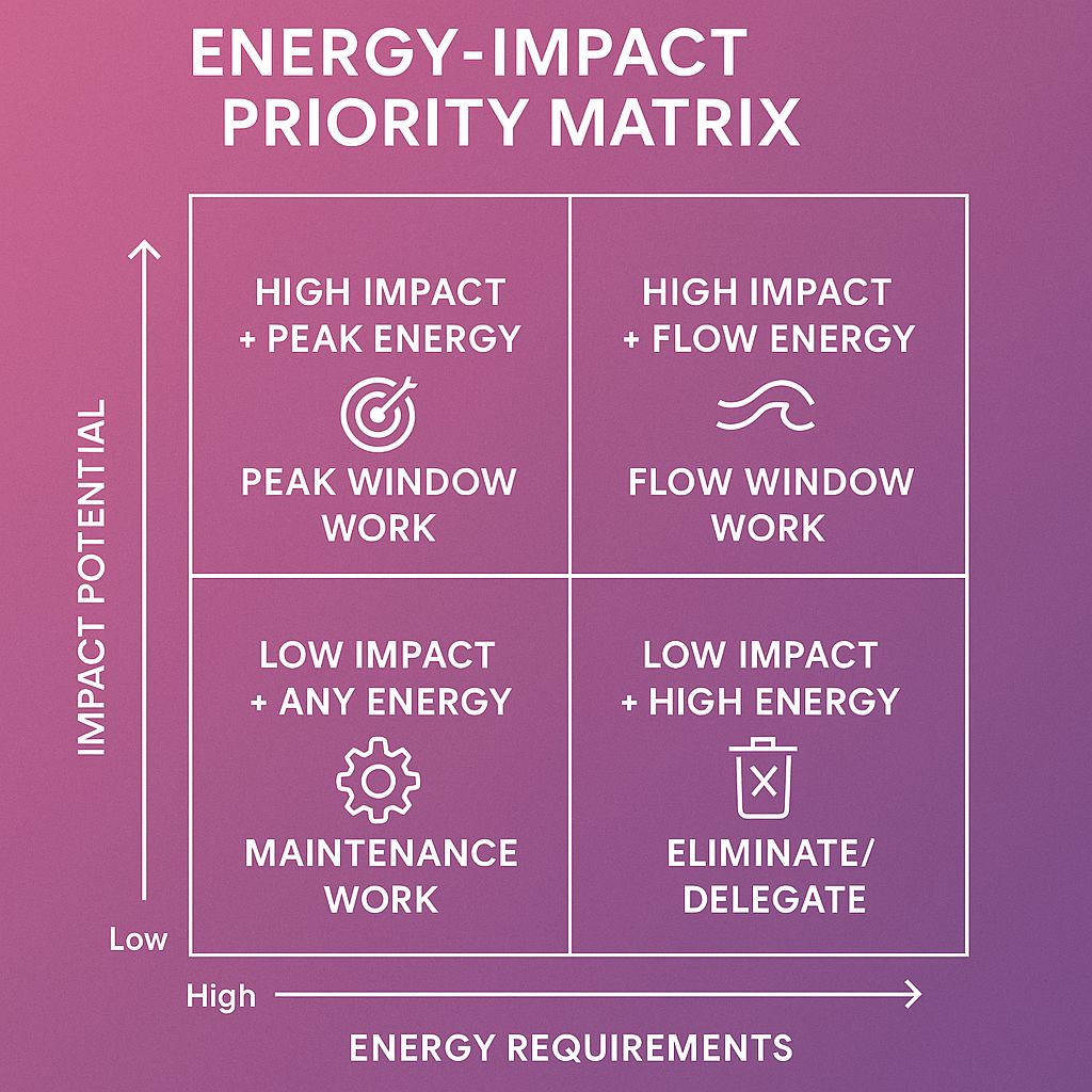 Traditional priority systems fail because they ignore your current energy state. Energy-based priority setting eliminates decision fatigue.